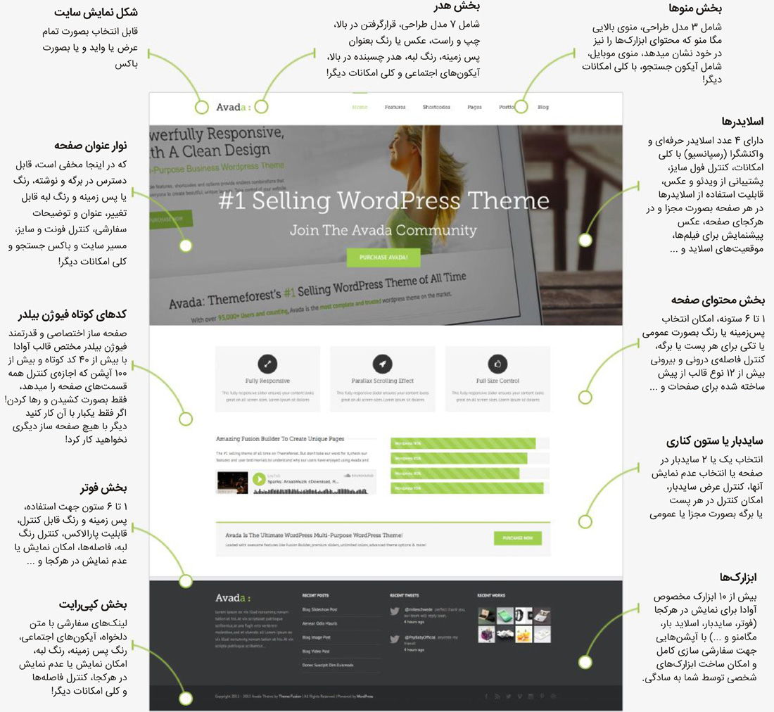 همانطور که در مطالب بالا مشاهده کردید قالب آوادا ویژگی های بسیاری دارد که باعث شده هر کسی بتواند سایت خودش را بسازد.